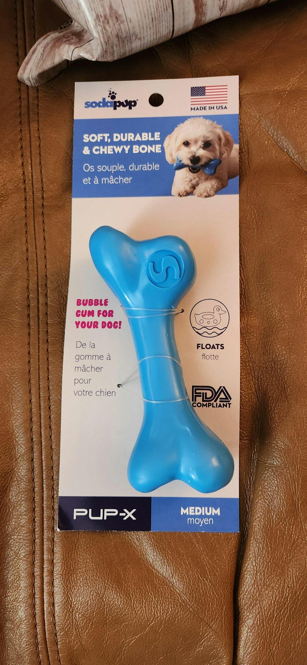 Unlike traditional rawhide bones that can splinter or soften, or real bones that pose choking hazards, the PUP-X Synthetic Rubber Bone provides the satisfying shape of a classic bone without the safety risks. The synthetic rubber is soft and chewy like bubble gum for your dog.