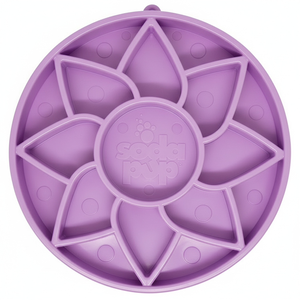The SodaPup Sunflower Softie eTray is a premium shallow slow feeder dog bowl and enrichment lick mat designed to transform ordinary treats and meals into engaging mental stimulation activities. Featuring a beautiful sunflower-inspired pattern with shallow ridges and valleys, this soft, flexible bowl naturally slows eating while providing calming, anxiety-reducing benefits for dogs of all ages and sizes.