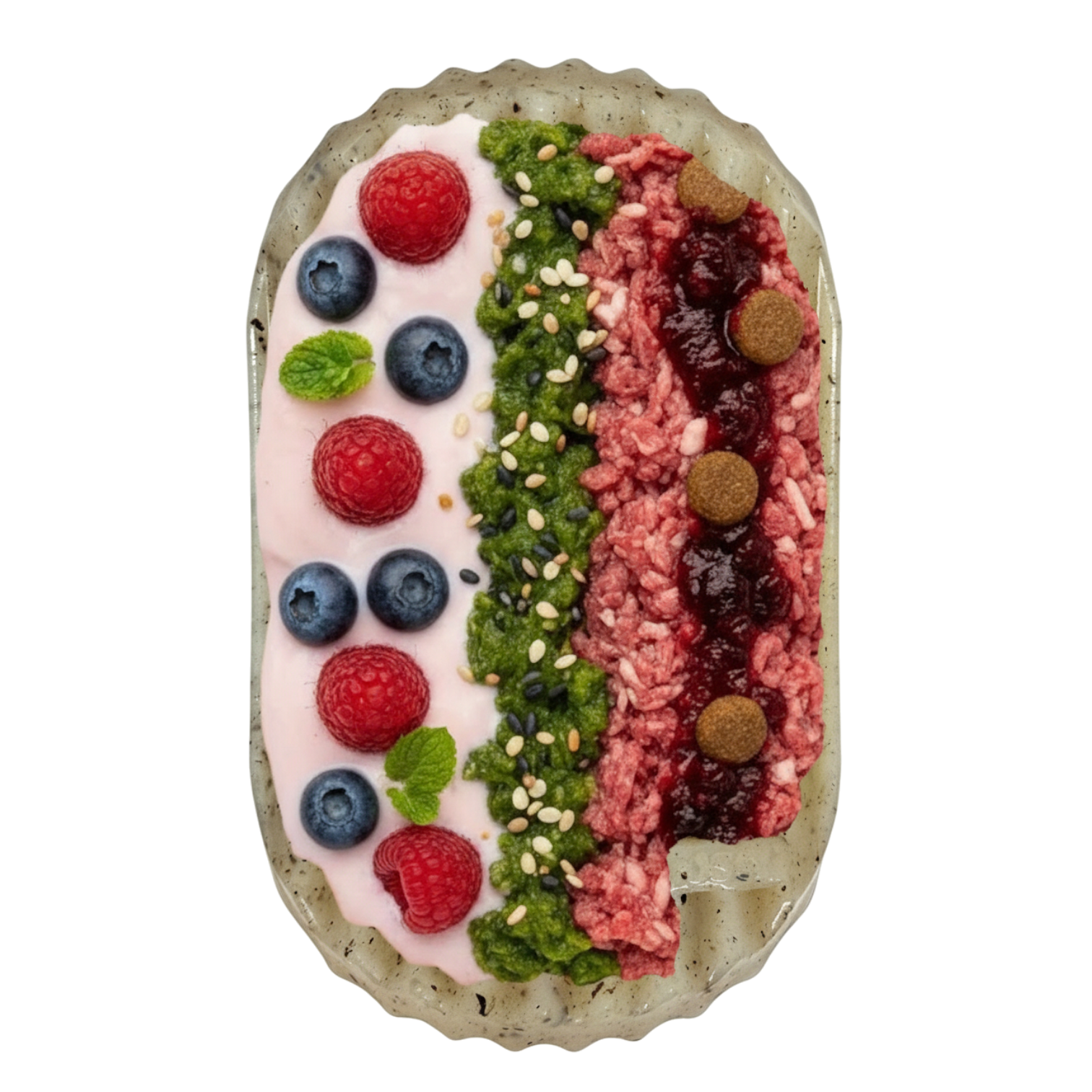 - Enrichment ridges – Fill ridges with peanut butter, yogurt, or spreads for licking enrichment